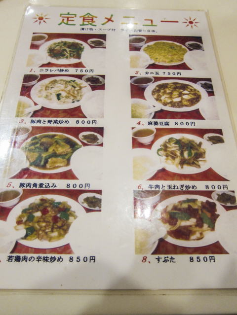ここはラーメン店ではなく、ちゃんとした中華料理のお店なので、基本的に料理は大皿の一品料理が基本のようですが、定食メニューもありました。