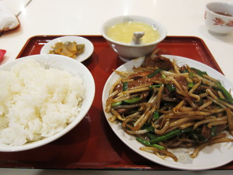 おお、なかなかのボリューム。美味しそうです。でもまずスープを一口。コーンと玉子のスープの様です。なかなか美味しい。こういう定食に付いてくるスープがあまり美味しく無い場合があるのですが、そういう所はメインの料理も美味しくありません。スープやザーサイが美味しい所は、料理も美味しいです。ここは、ザーサイも美味しかったです。