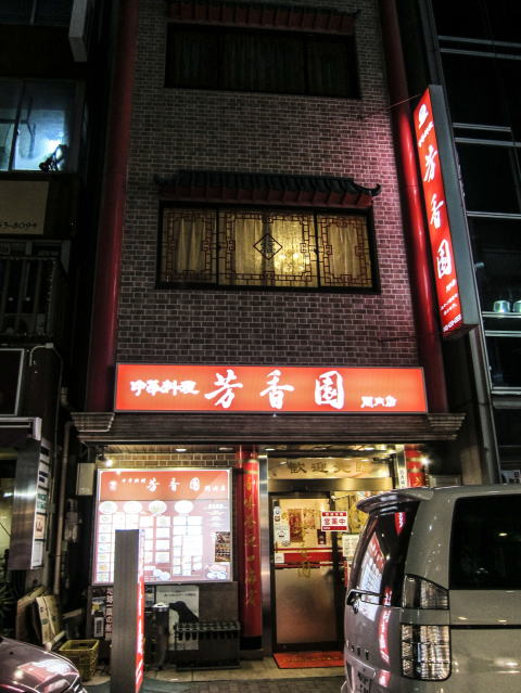 今日は、関内ホールでバンドの練習。そのまえに関内で夕食です。JAZZクラブのBarBarBarから関内ホールの方へ抜ける道沿いにある中華料理店「芳香園」です。