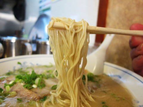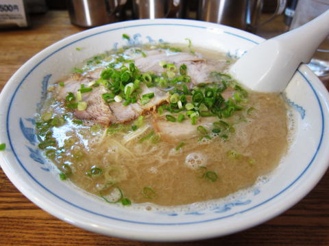 ここも初めてのお店なので、定番メニューをオーダー。博多ラーメンにしました。麺の固さは5段階で選択できますが、私は真ん中の「かた」にしました。さすがに麺を茹でる時間は短く、すぐにラーメンが出て来ました。