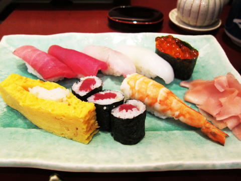 勿論、回っていないちゃんとしたお寿司屋さんです。今日は下から2番目、「松」の握り寿司を1人前オーダー。