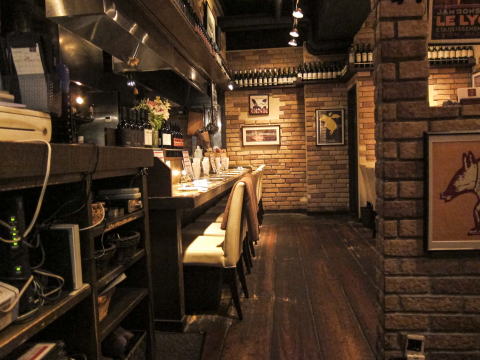 店内に入ると、キッチン前にカウンター席、その周りにテーブル席が並んでいます。