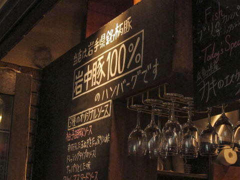 大変ふっくらしたハンバーグですね。ここは看板にもある通り、岩中豚というブランド豚を100%使っているそうです。二つに切ると肉汁タップリ。美味しそうです。さて、一口食べると柔らかさが伝わってきます。ただ、豚肉100%なので、結構あっさりした感じ。このハンバーグには、チーズや、パンチェッタを合わせた方が良いかも知れません。私の個人的な好みからすると、もう少し肉の焼けた香りが欲しいかな、という感じ。