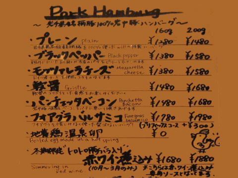 ここはハンバーグ専門のお店。ですのでメニューは全てハンバーグです。