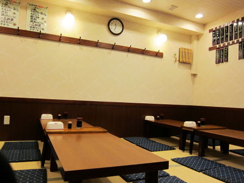 店内に入ると、左側が板場とカウンター、右手前がテーブル席で、奥が座敷です。