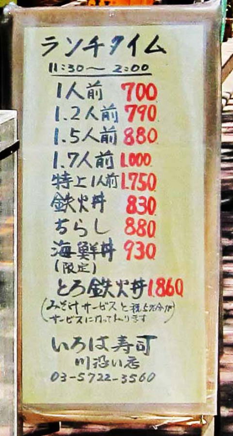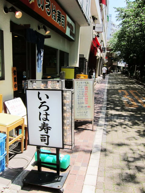 今日は中目黒で昼食です。中目黒駅から目黒川を渡ってすぐの所にある、いろは寿司でランチを頂きました。外観はこんな感じ。