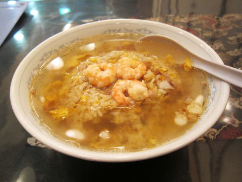 本当に、スープの中に、チャーハンが入っています。あんかけレベルでは無いですね。お茶付けに近い。