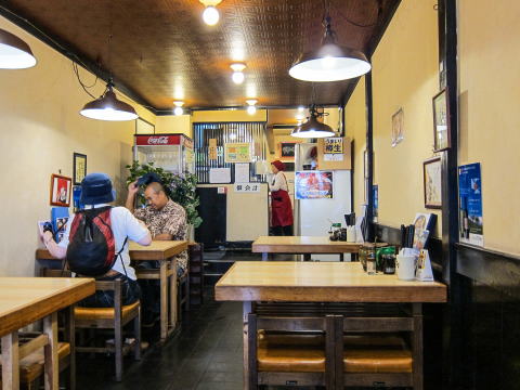 店内に入ると、縦に長く、手前はテーブル席、奥にはカウンターもあります。こんな感じです。