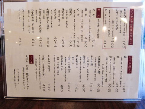 さて、オーダーですが、天ぷら定食ではなく、天丼にしました。天丼はA、B、Cとありますが、私はCをオーダー。程なくして、天丼登場です。