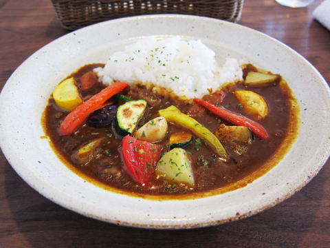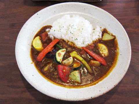 私は2階でお食事を頂きました。今日は、焼き野菜のカレーを頂きました。