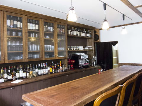店内もウッディでお洒落。看板にカフェ・バーと書いてありますがそんな感じですね。