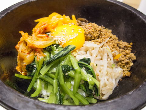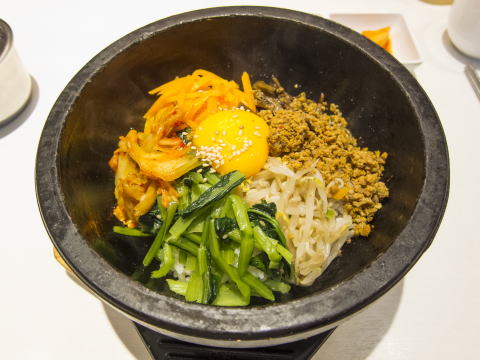 熱々のビビンバです。味は、薄めかな。でも下におこげができていて、それが嬉しいですね。パリッとして美味しいです。