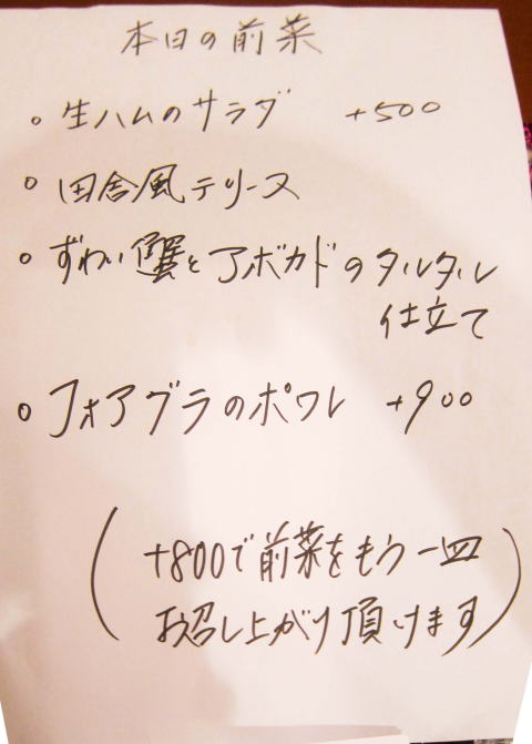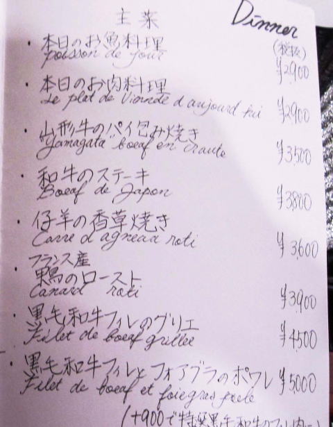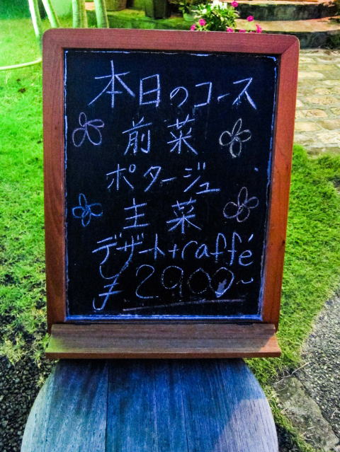 ここは、夜はコース料理のみのようです。お店の外の看板にはこのような表示。