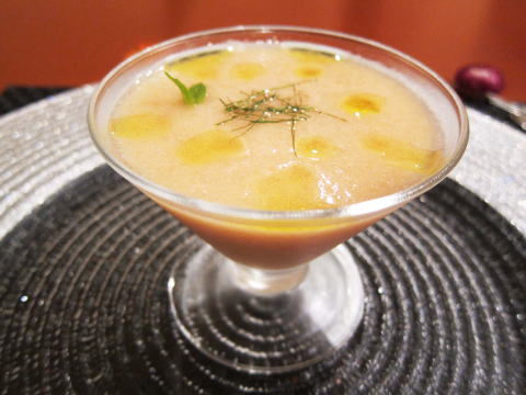 こちらは、黄金桃という桃をつかったポタージュスープ。スープというより本当に桃を食べている感じ。こちらも大変美味しいです。