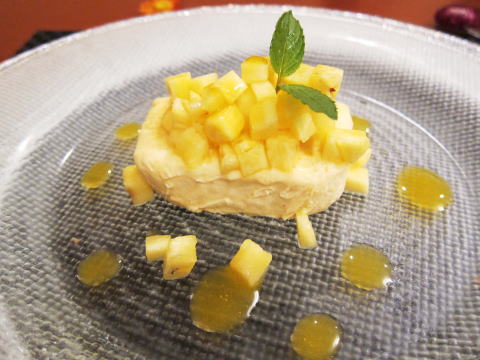 こちらは、宮崎産マンゴーを使ったパルフェです。そして上に乗っているのは、沖縄産のパイナップルを小さく刻んだものでした。これも手が込んでいて、そして美味しいです。