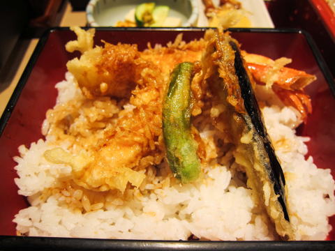 天ぷらは海老かと思ったら、蟹と海老がそれぞれ1本づつでした。後はしし唐とナス。