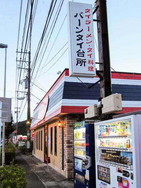 今日は秦野のタイ料理店「バーンタイ台所」で夕食。ここは以前は普通のラーメン店でした。それがタイ料理店としてリニューアル。場所は秦野の万葉の湯から東名インターの方へ少し進んだ左側にあります。外観はこんな感じ。