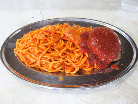 ここでは、殆どのお客様がナポリタンをオーダーします。そのナポリタンも、ハンバーグが乗ったものがお勧めのようです。私もこのハンバーグが乗ったナポリタンをオーダー。オーダーすると殆ど待たずに出てきました。