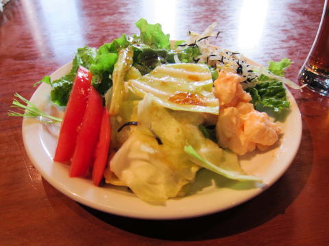 まずはサラダ。好きなだけ食べて良いと言われてもそんなに食べられないですね。
