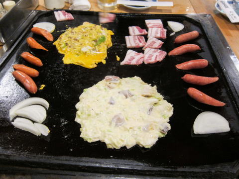 こんな感じで焼いて、お好み焼き、もんじゃ、焼きそばとフルコースで楽しみました。