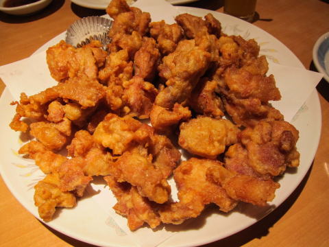 定番鶏の唐揚げ。この唐揚げは上品。塩を付けて頂きます。
