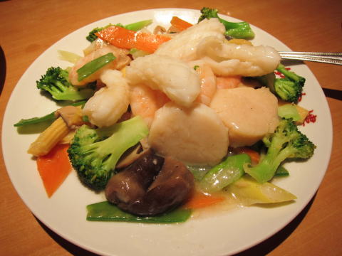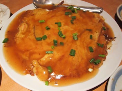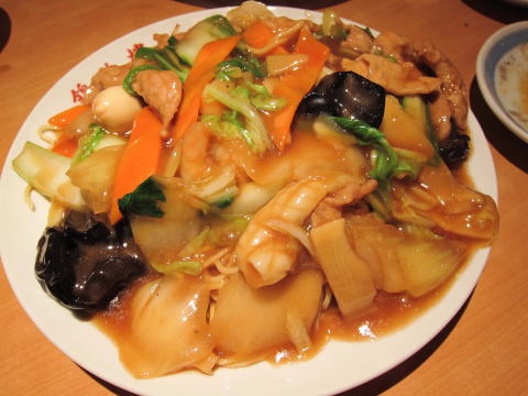 五目あんかけ焼きそば。麺が見えません。これも美味しい。