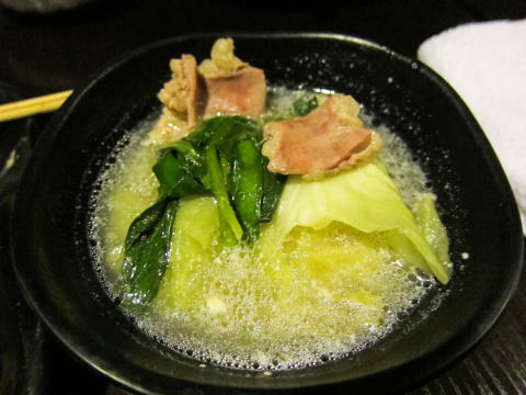 これは、モツ鍋を取り分けて頂いたもの。本当に良い味でした。