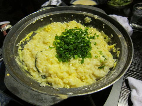 こちらは、モツ鍋の後のシメのおじや。これも大変美味しかったです。