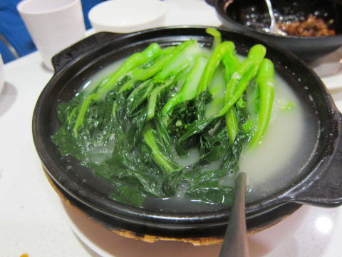 青菜の茹でたもの?スープはあっさりですが、ニンニクが利いています。
