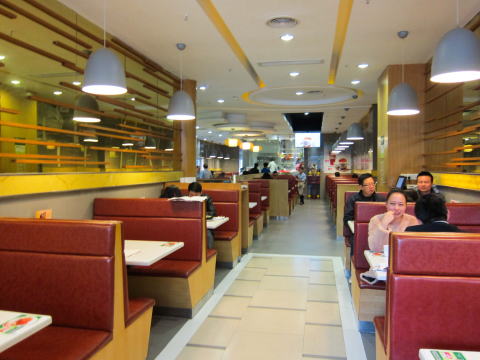 店内は四人がけのテーブルが並び、日本のファミレスみたいな感じです。綺麗な店内です。