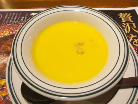 サラダを食べていると、セットのスープが出てきました。コーンクリームスープです。