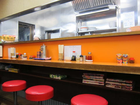 店内に入ると、テーブル席が3つとカウンター、2階もあります。カウンターはこんな感じ。
