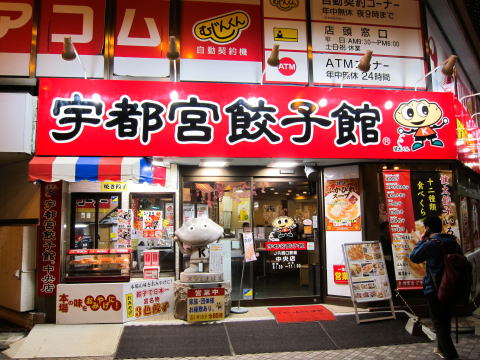 今日は宇都宮で仕事。なので、仕事が終わってから宇都宮で夕食。せっかくの宇都宮なので餃子を食べようということに。駅前にある「青源」が人気なので、そこで食べようとしたら、既に閉店時間を過ぎていました。仕方なく、これまた駅前にある「宇都宮餃子館」へ。外観はこんな感じ。超ハデです。