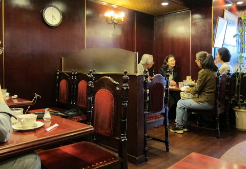 まあ、いわゆる喫茶店ですね。料理のウィンドーディスプレーもあるし。さて、店内に入ると、これまた期待を裏切らない喫茶店の感じ。結構お客さんが入っている。