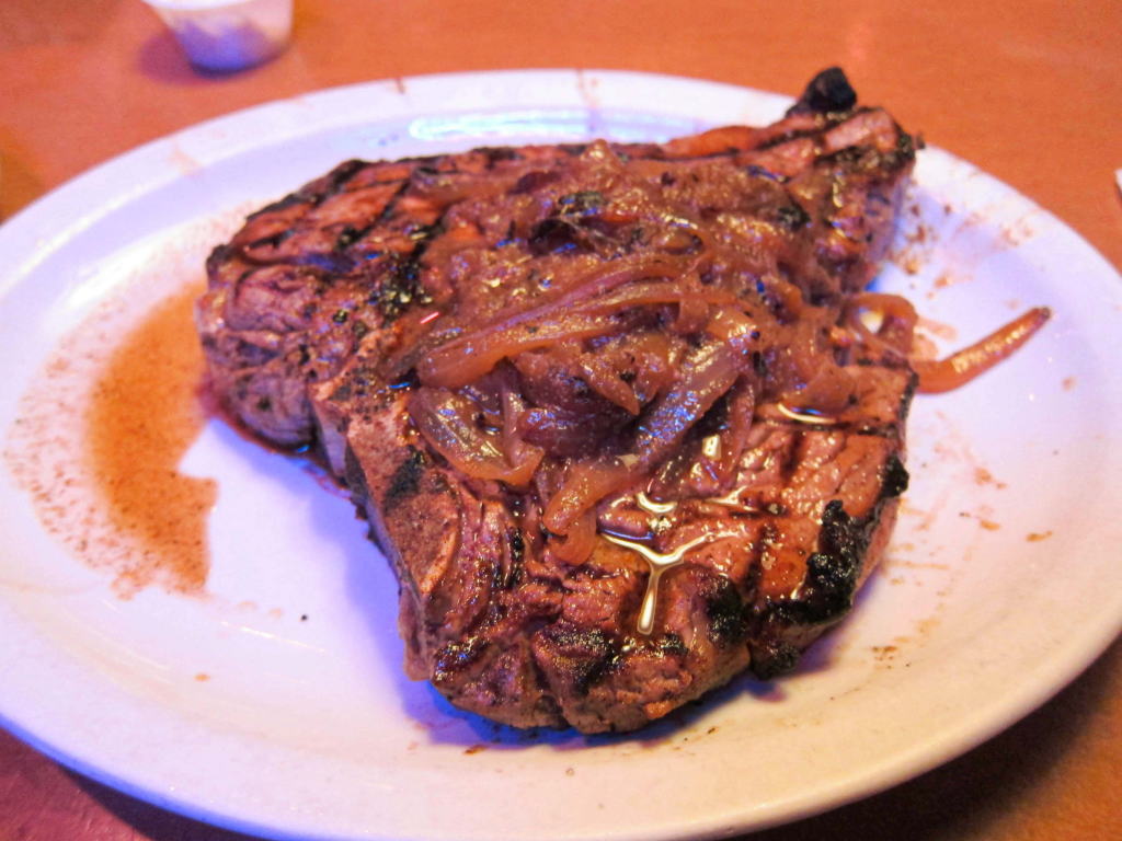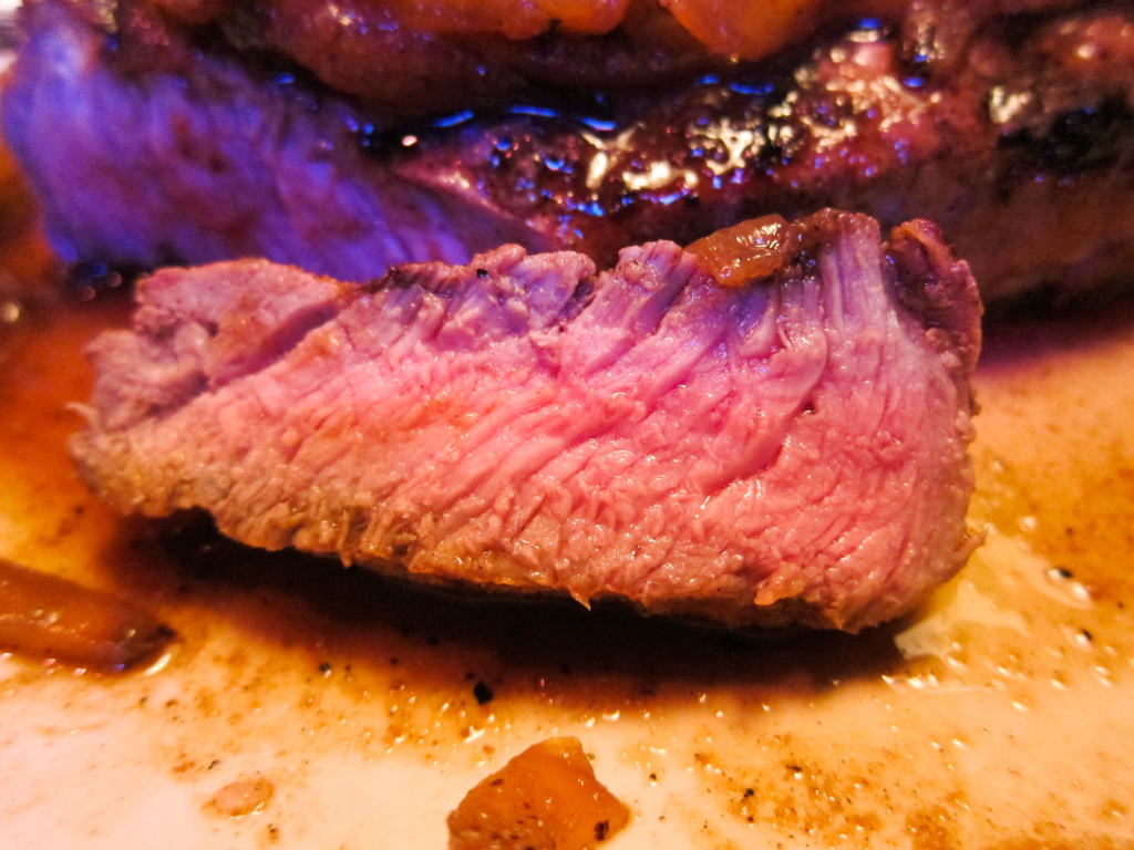 Tボーンステーキは、写真上がサーロイン、下側がフィレです。