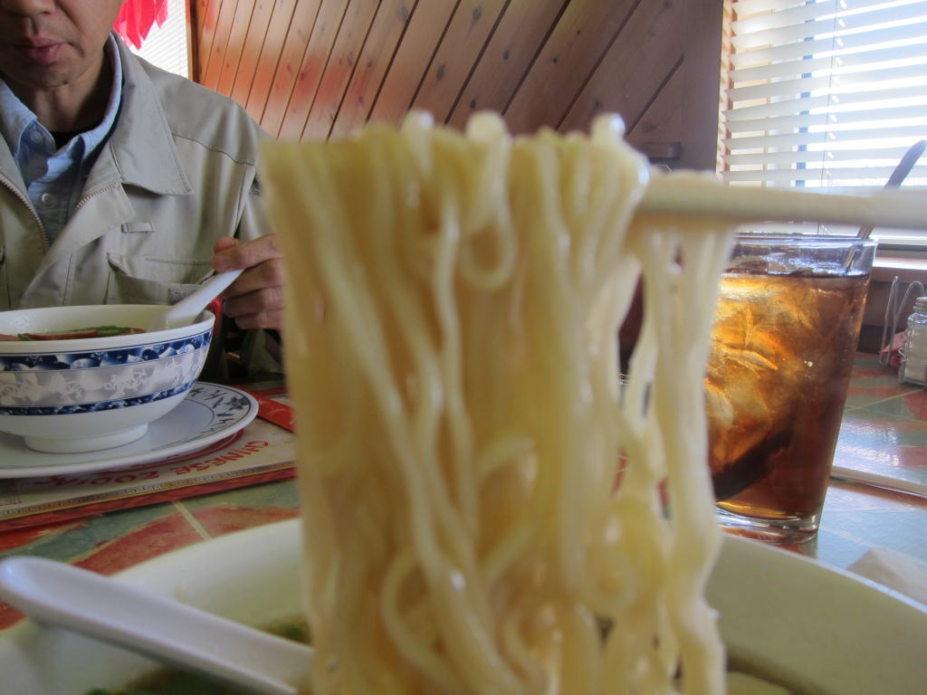 食べてみると、麺は殆どインスタントラーメンという感じ。それに大きなエビと野菜が乗っている。