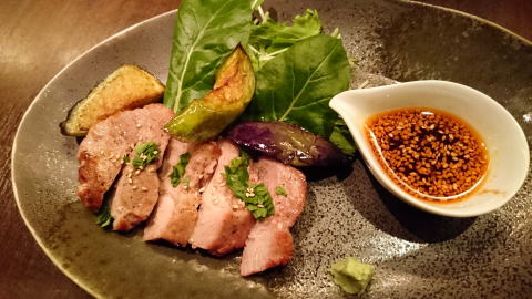 イベリコ豚の炙り焼きわさびの香り旬野菜添え