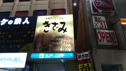 駅前にある居酒屋「きざみ」。外観はこんな感じ。