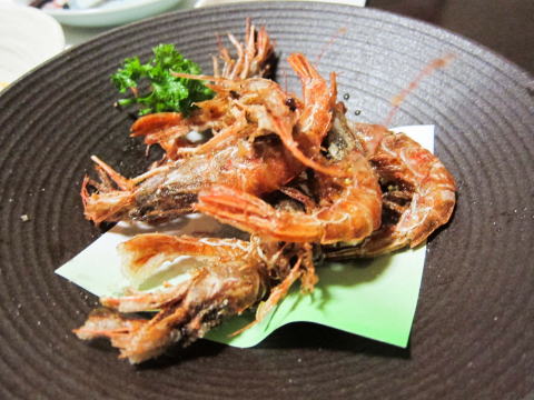 名前は忘れましたが海老の素揚げ。頭までサクッとして柔らかく、美味しいです。塩とタレがありましたが、私は塩が好きです。
