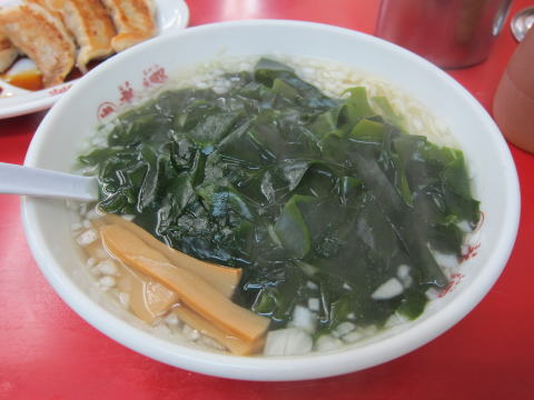 そして、タンメンがびっくり。丼一面にワカメ。お店の方はラー油をかけて食べてください、との事。