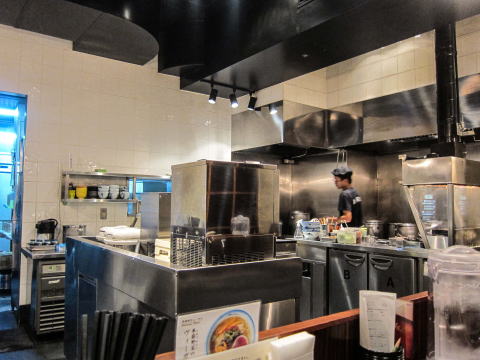 店内はオープンキッチンを囲んでカウンター席が並んでいます。