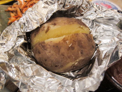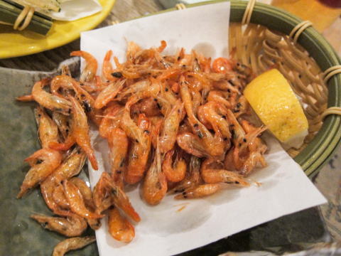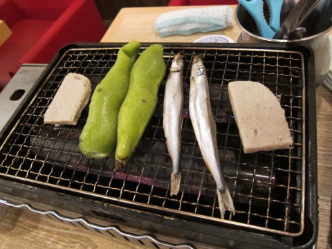 まずお通し。お通しが網焼きとはビックリ。それもお店の方が焼いてくれます。