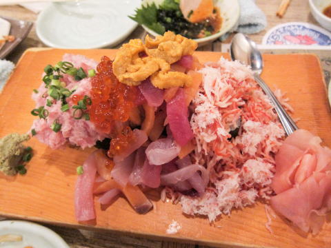 名物ぶっかけ寿司。このネタの下に巻物の寿司が隠れています。