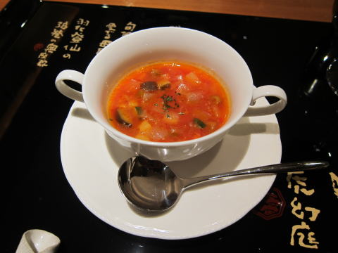 続いて、本日のスープ。ミネストローネでした。あっさりとした口当たりで、美味しいです。