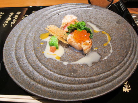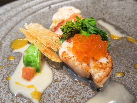 次は、鮮魚のポアレ。タラバ蟹もホタテも美味しいですが、特にホタテは大振りで、しっかりとした肉質で美味しいです。