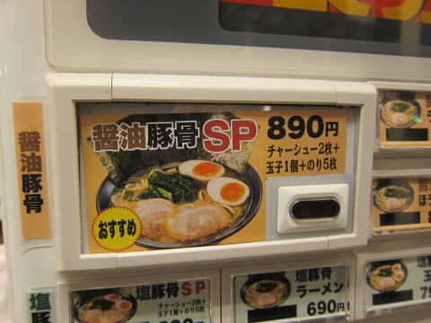 オーダーは、食券を最初に購入する方式です。今日は「醤油豚骨SP」にしました。