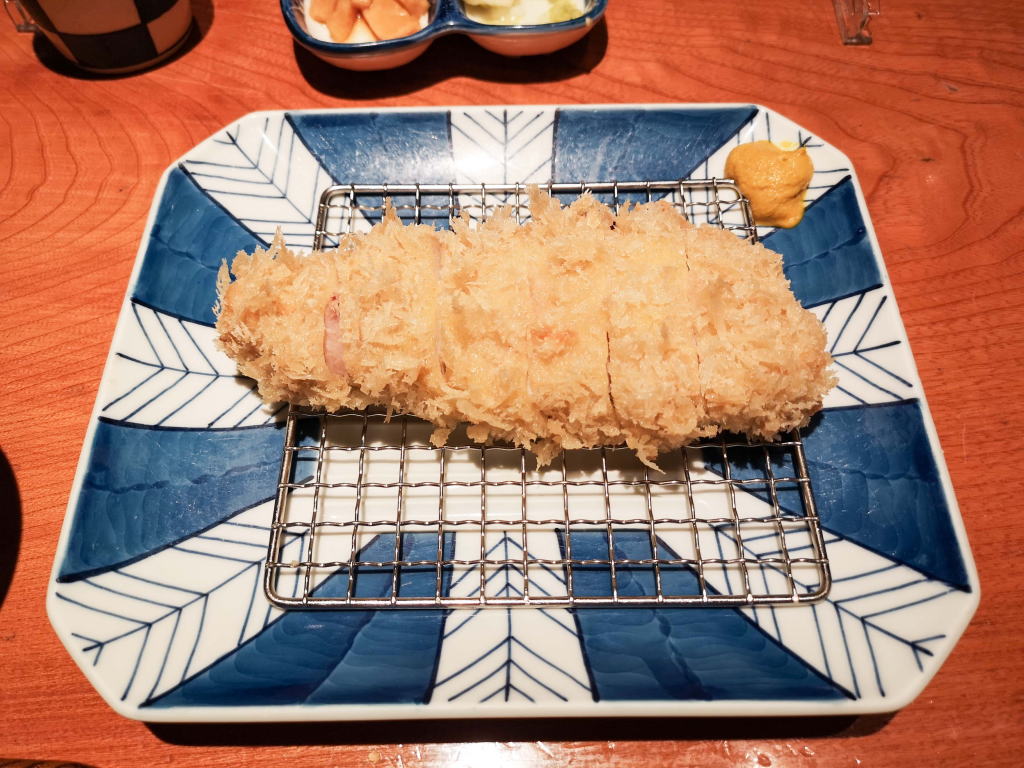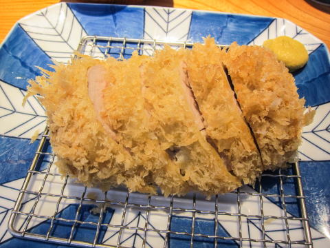 大振りのひれかつ。ころもは、淡いきつね色。やはり低温で揚げているからですね。