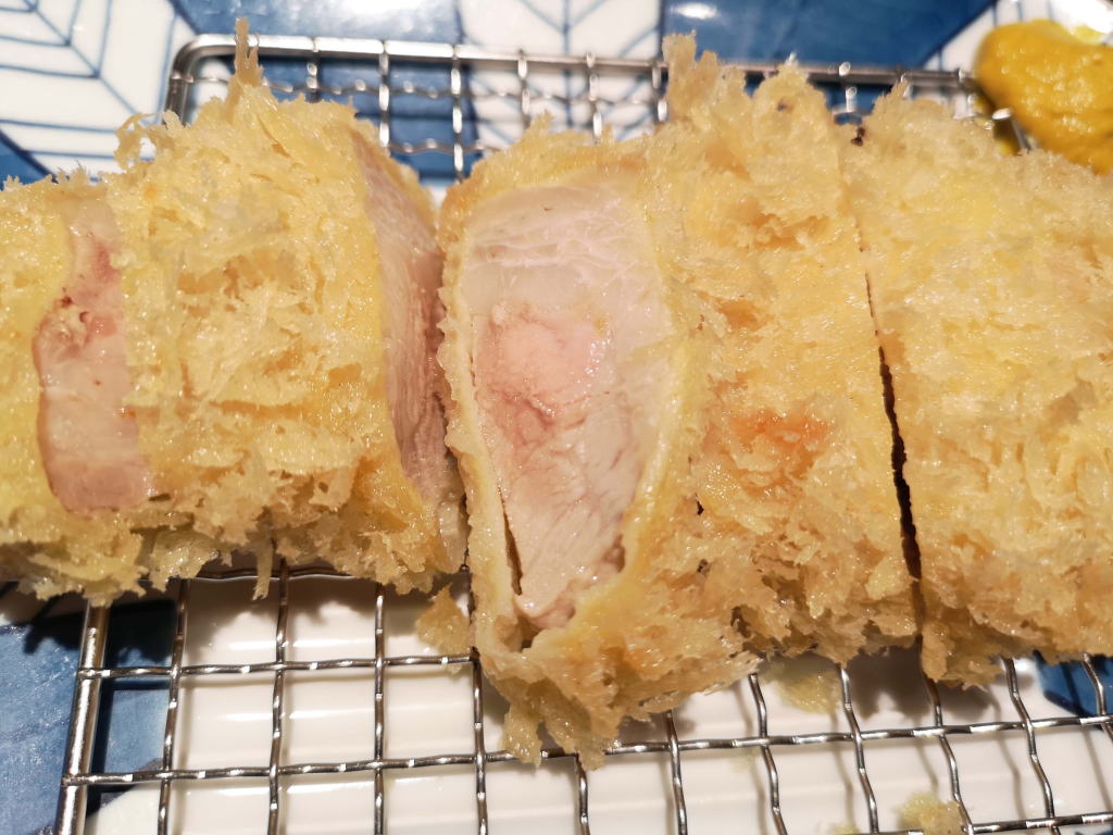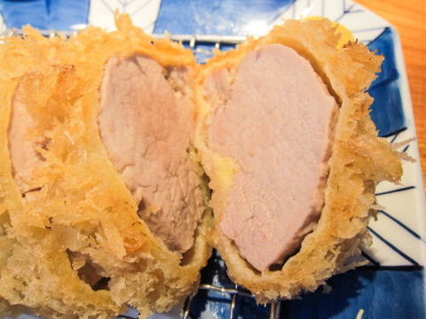 大きなひれ肉の中まで綺麗にピンク色に揚がっています。