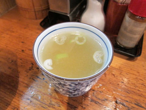ここでは、からあげ定食が人気です。なので、迷わずからあげ定食をオーダーしました。すると、直ぐに鳥ガラで取ったスープが出てきます。