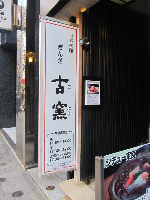 今日は銀座でランチ。7丁目にある「古窯」です。外観はこんな感じ。